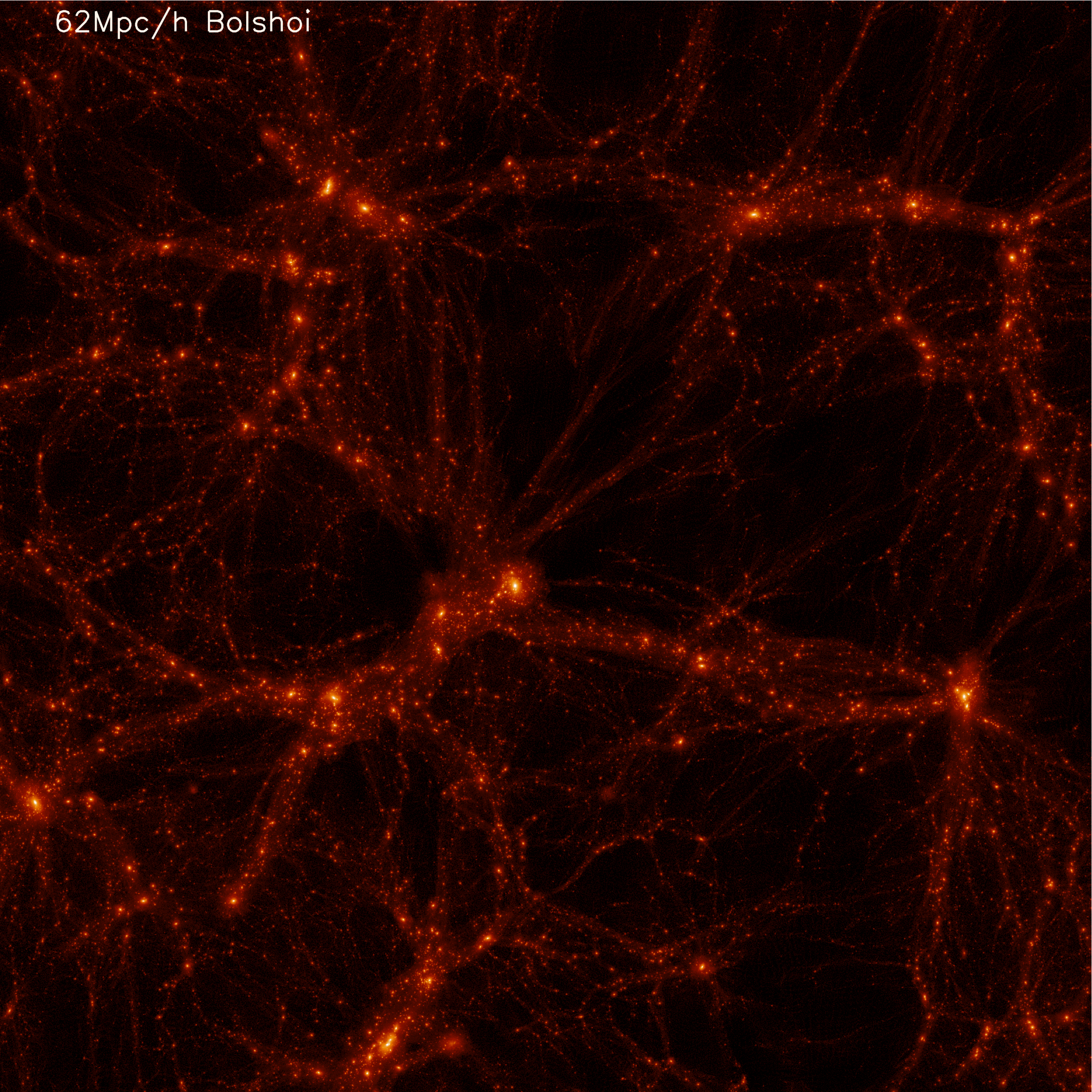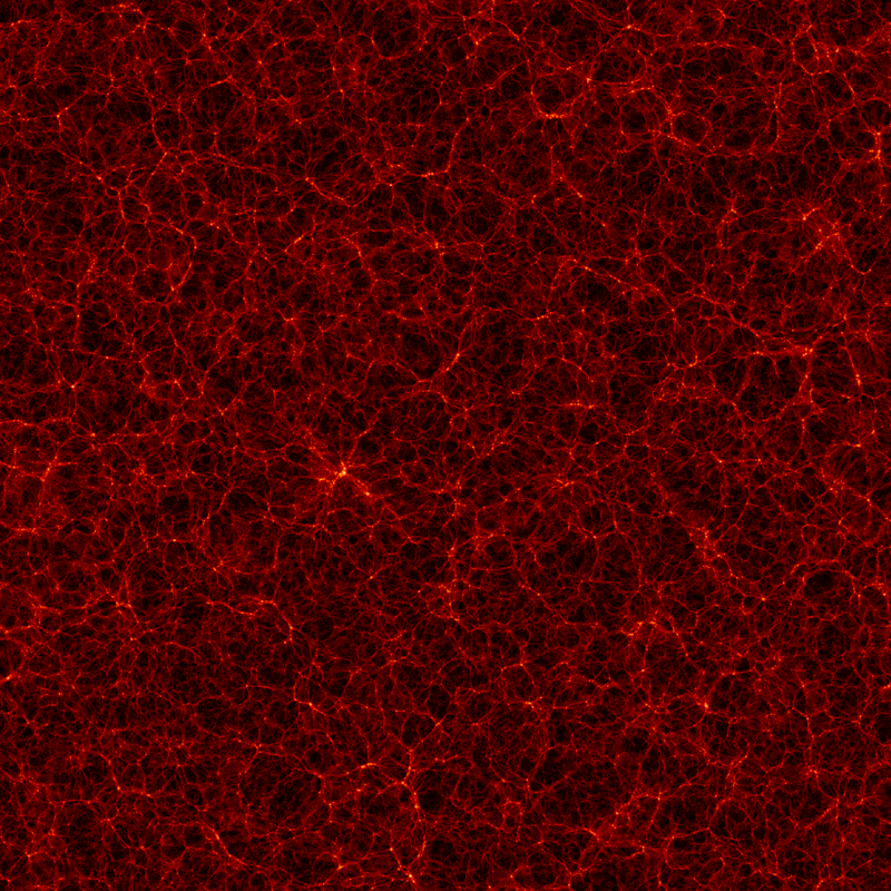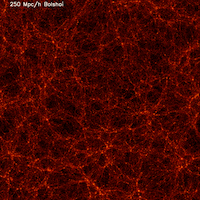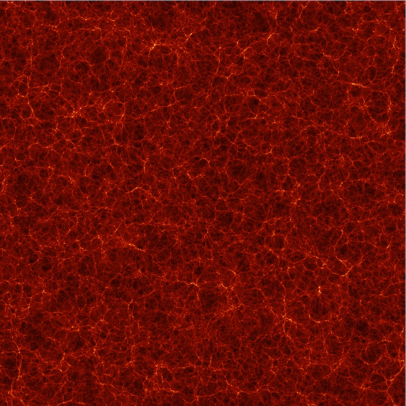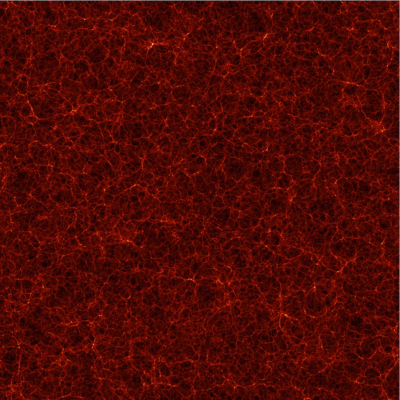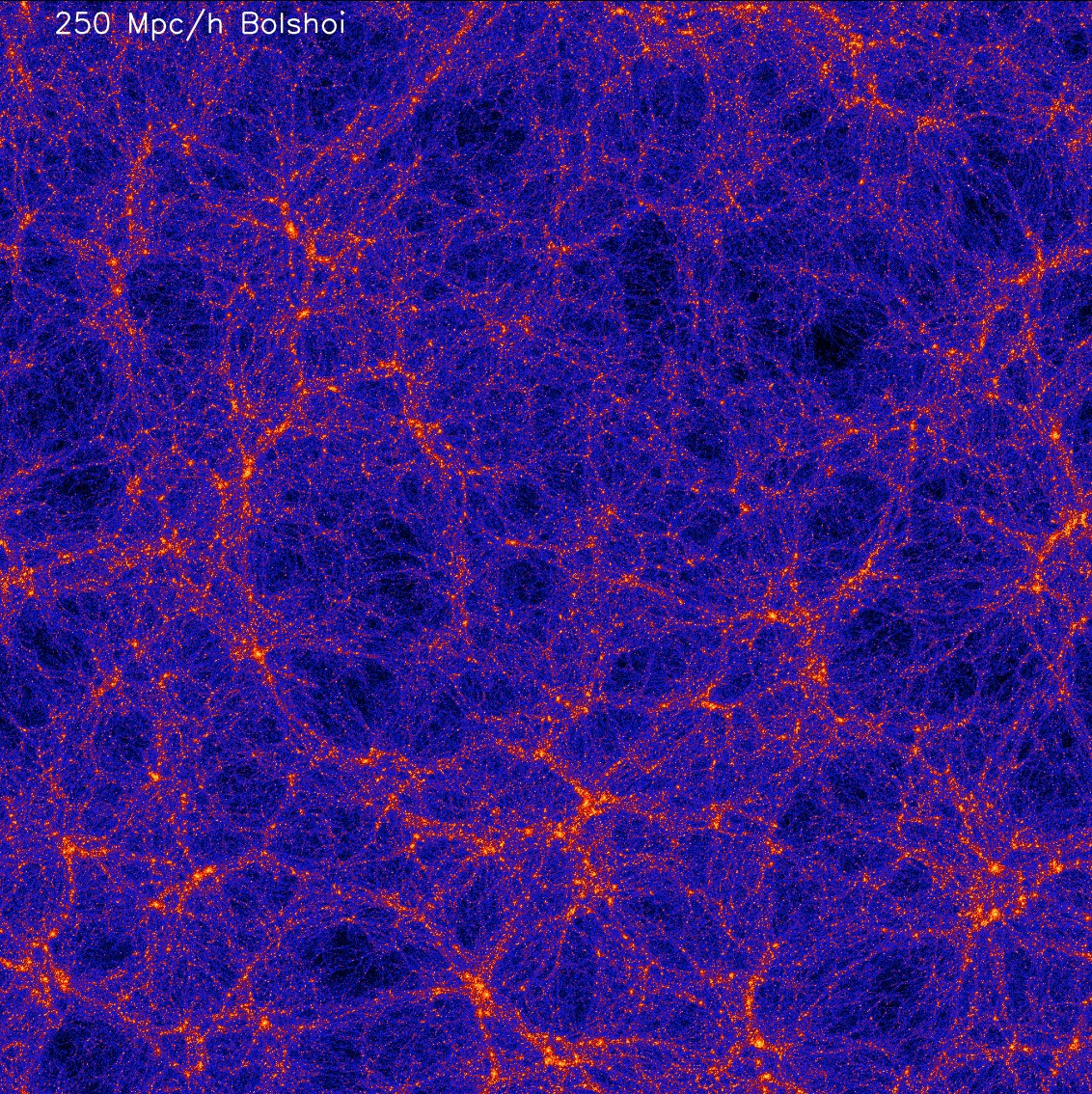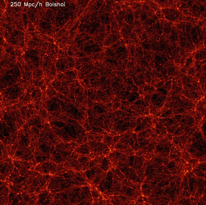 A slice of the whole 250Mpc box of Bolshoi. Made by Stefan Gottlober (AIP) with IDL