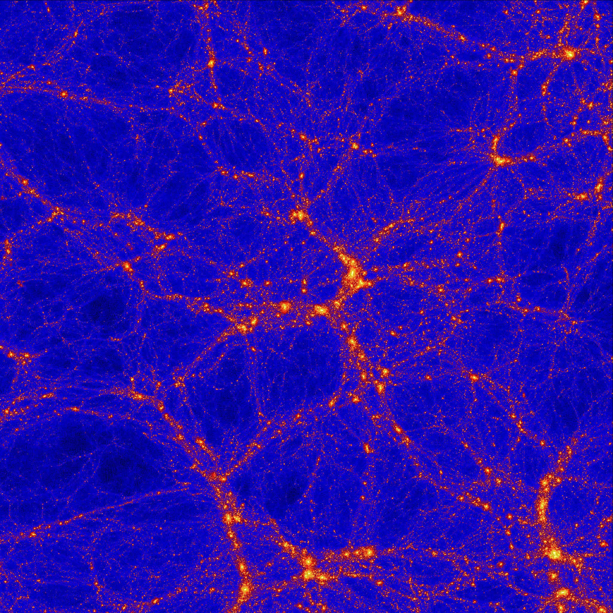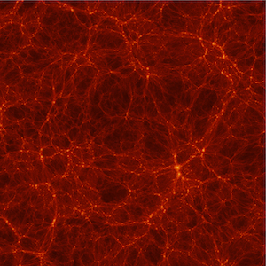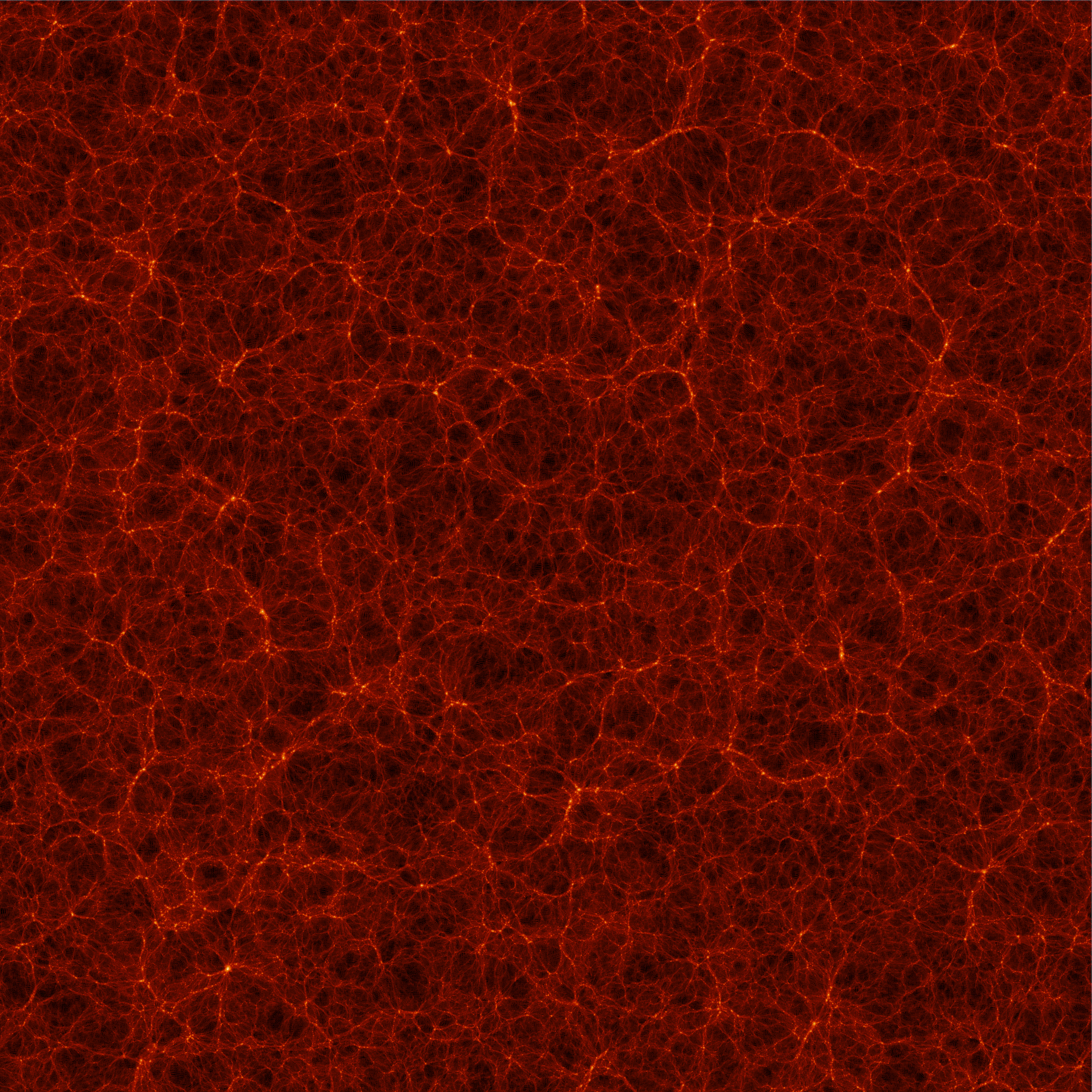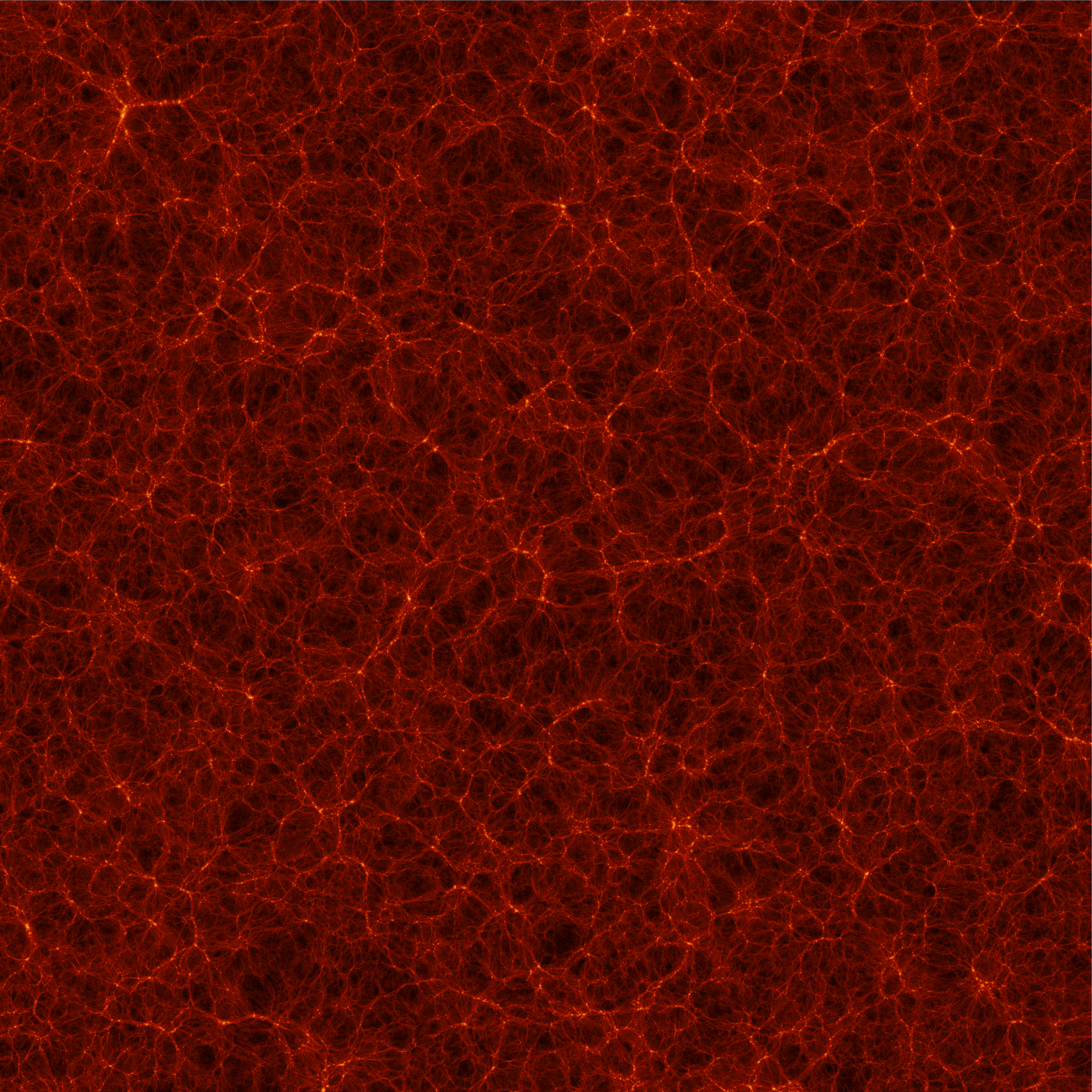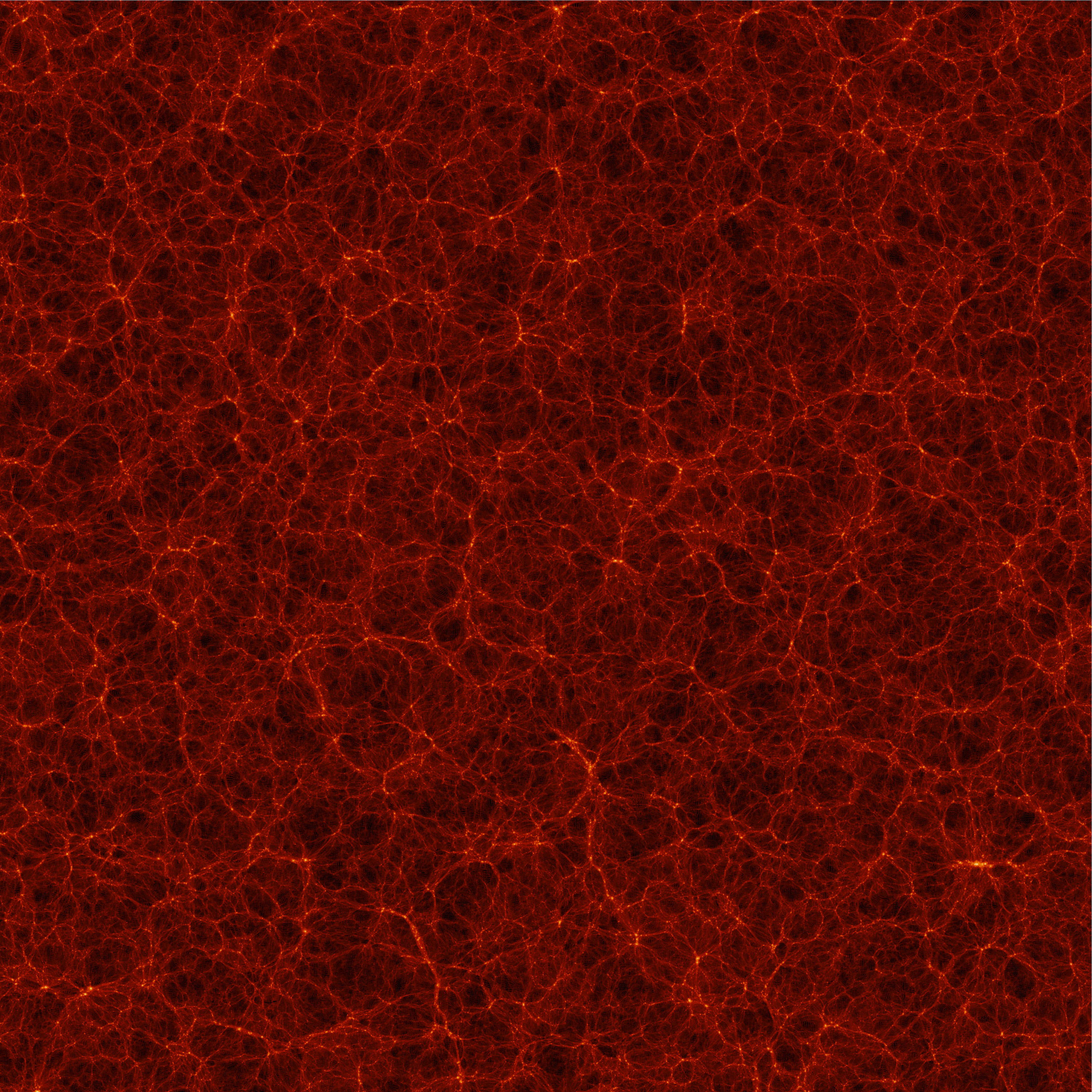 A slice of the whole 250Mpc box of Bolshoi. Made by Stefan Gottlober (AIP) with IDL