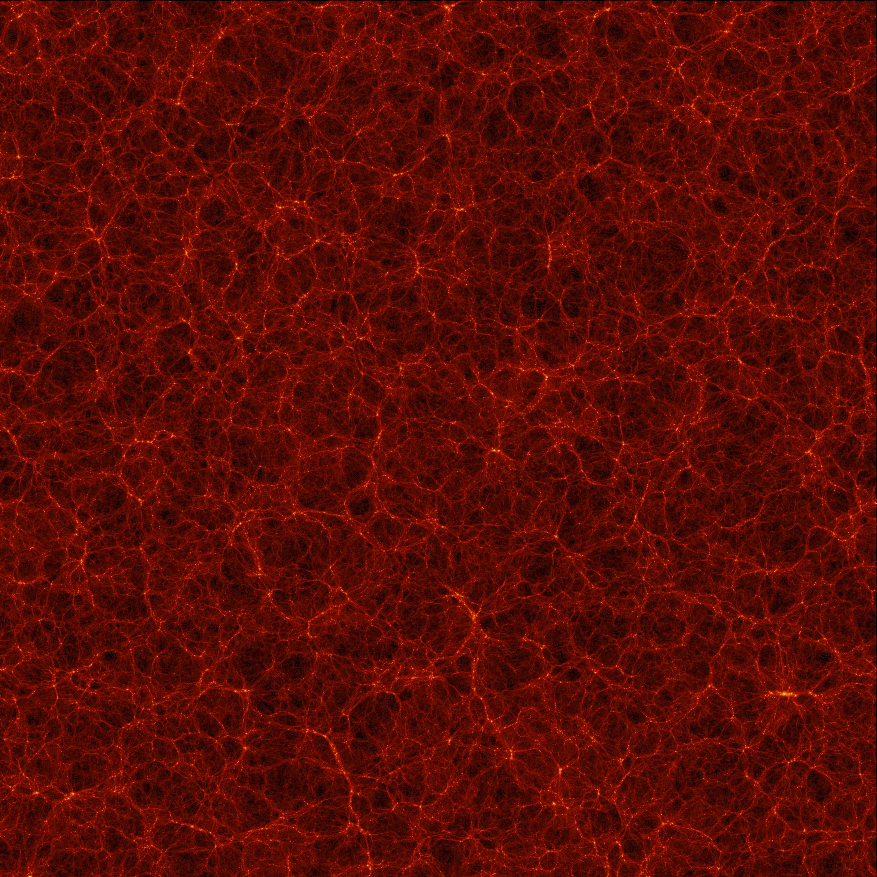 A high resolution slice of the whole 1000Mpc box of BigBolshoi. Made by Stefan Gottlober (AIP) with IDL