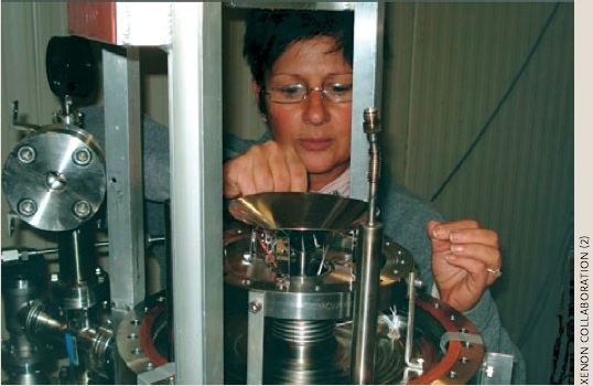 XENON COLLABORATION (2)THE SEARCH XENON, an international collaboration led by Columbia University physicist Elena Aprile (above), is one of several teams trying to detect dark matter directly in under- ground experiments. The team's detector is in the left photo.