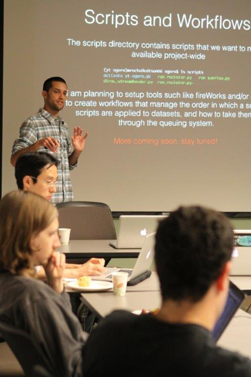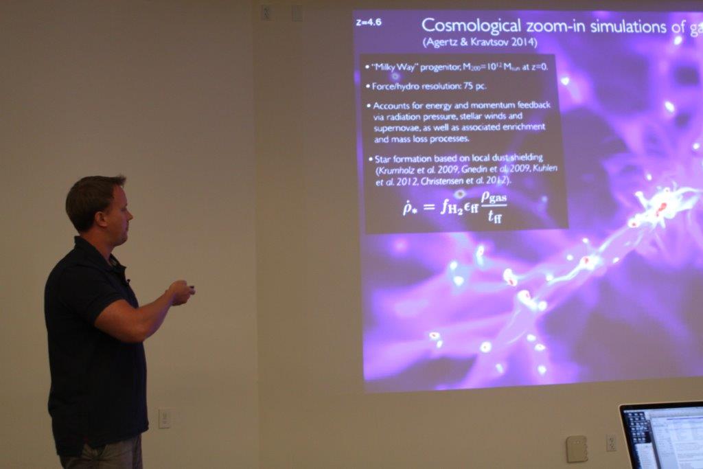 The Galaxy Workshop, August 17–21, will be held in the Simularium, room 180 in the Engineering 2 Building. If you will be participating in AGORA Workshop, August 21–23, it will meet on August 21 also in the Simularium, and on subsequent days in ISB 102 (Interdisciplinary Sciences Building). Click on the General Information tab or the AGORA Workshop tab for more information.