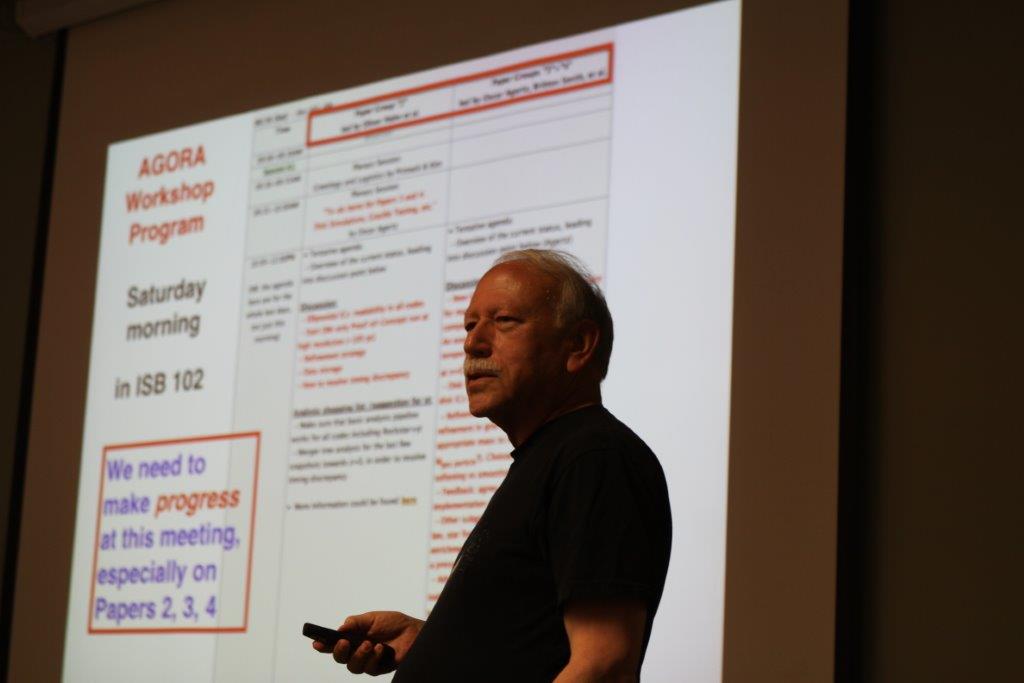 This summer, the final day of the Santa Cruz Galaxy Workshop will also be the first day of the Assembling Galaxies of Resolved Anatomy (AGORA) Workshop (https://sites.google.com/site/santacruzcomparisonproject/workshops/4th-workshop), which will run from August 21–23. On August 21, the AGORA workshop will meet in the Simularium, room 180 in Engineering 2 Building in the School of Engineering. Map. (Similar map but with directions from Core West Parking Garage to the Simularium.) Susequent days will meet in ISB 102 (Interdisciplinary Sciences Building). Map.