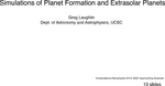 Simulations of Planet Formation and Extrasolar Planets. Greg Laughlin (University of California, Santa Cruz)