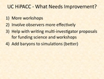 Roundtable discussion by UC-HiPACC campus and lab representatives of what has worked, what needs improvement. S. Peng Oh (UCSB), Maruša Bradač (UCD), Gillian Wilson (UCR), Tom Vestrand (LANL)